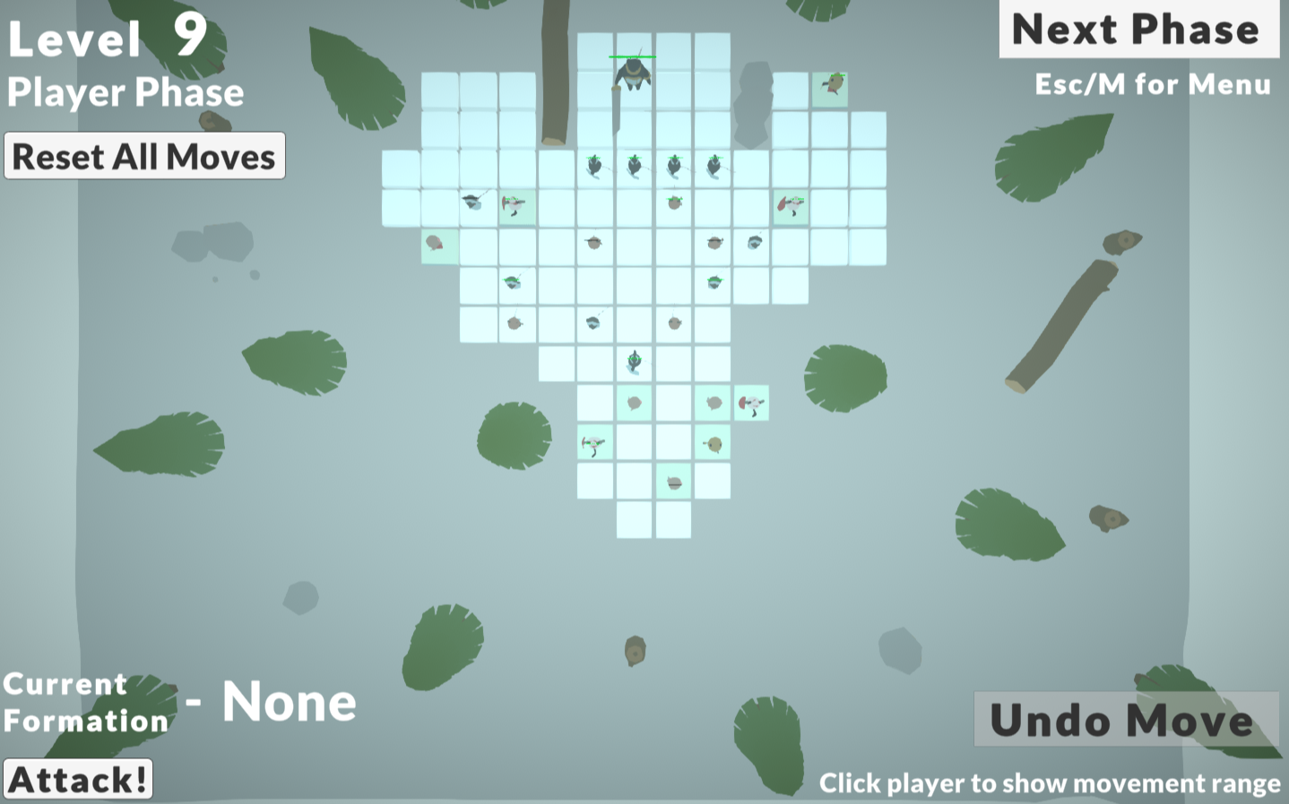 - Grid-based movement and attacking, with highlighting to show range of actions and selected targets